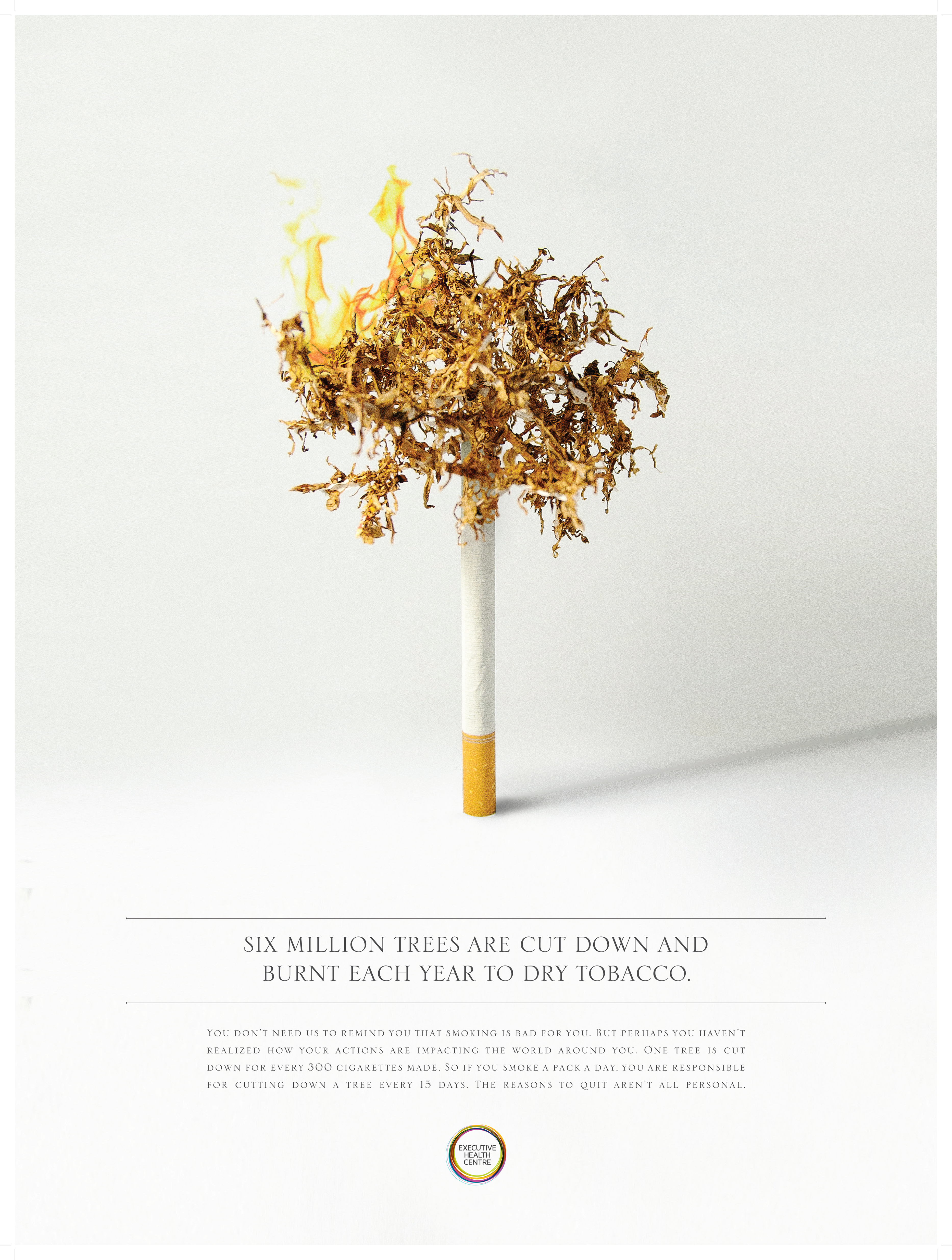 Cigarette Tree - 2011 This is a cigarette tree sculpture made from 5 cigarettes (not entirely). I found myself one day with some cigarettes, but I don't smoke, so I decided to give myself a challenge and make something out of them. It was turned into a print ad for Executive Health centre. Featured on: • Art Here • Coloribus • Momentum |