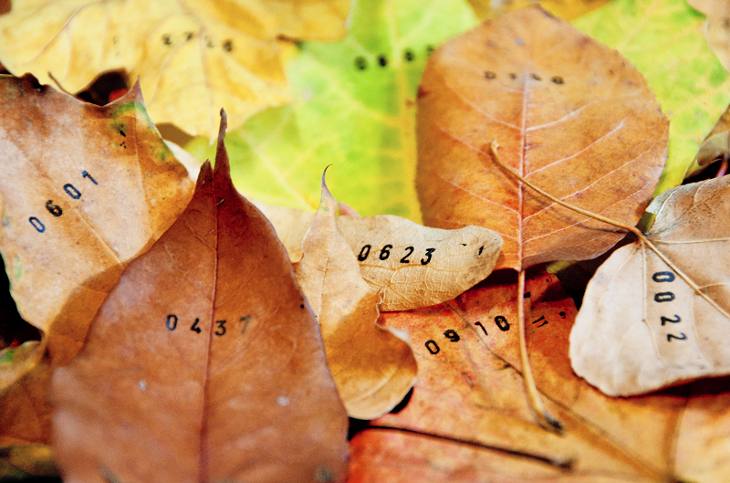 Fall Rise - 2012 This was a street art series in Brampton consisting of numbering 1,500 leaves with a stamp, and then releasing them back onto the bike path area for people to find. Stamping all of those leaves took a really long time! Featured on: • Brampton Guardian |